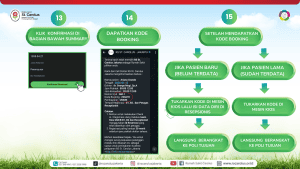 - Pasien lama (sudah terdata): menukarkan kode booking di mesin kios pendaftaran.